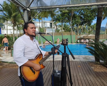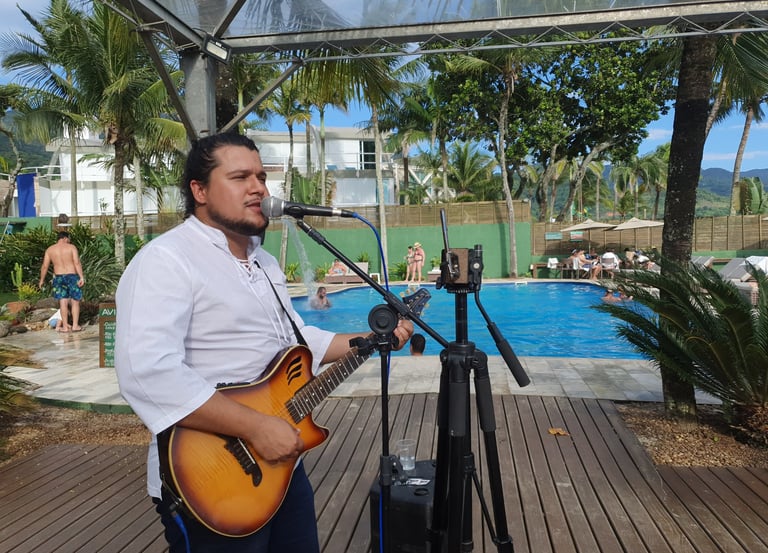 Você pode selecionar o repertório previamente pelo whatsapp ou pedindo a música que quiser durante o seu evento